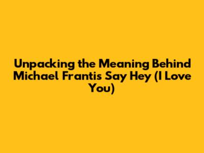 Hey music lovers! Ever found yourself tapping your feet and feeling instantly uplifted by a song? Well, if you're anything like me, Michael Franti's "Say Hey (I Love You)" has probably done the trick. This infectious track, with its reggae-infused beats and undeniably positive vibes, isn't just a catchy tune. It's packed with a powerful message. Today, we're diving deep into the lyrics, exploring the heart of what Franti is trying to tell us. So, buckle up, because we're about to unpack the meaning of this beloved song. We'll explore the core message of the lyrics, the stories behind its creation, and why it continues to resonate with so many people around the globe.
