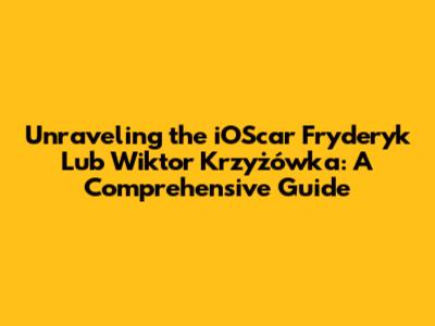 Unraveling The IOScar Fryderyk Lub Wiktor Krzyżówka