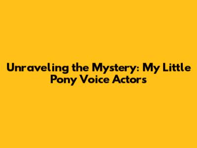 Unraveling The Mystery: My Little Pony Voice Actors