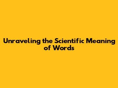 Unraveling The Scientific Meaning Of Words