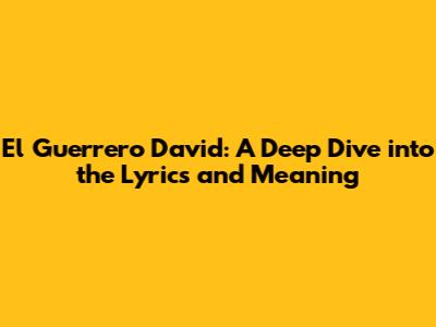 Unveiling 'El Guerrero David': Lyrics, Meaning & Impact