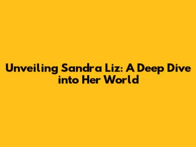 Unveiling Sandra Liz: A Deep Dive Into Her World