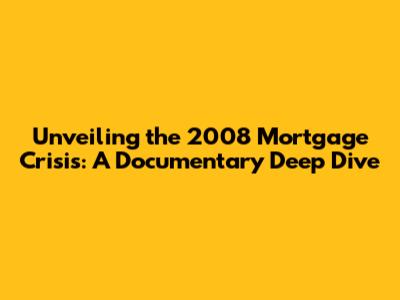 Unveiling The 2008 Mortgage Crisis: A Documentary Deep Dive