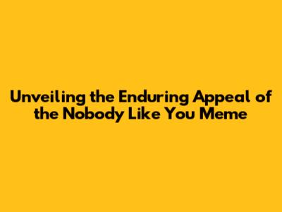 Unveiling The Enduring Appeal Of The Nobody Like You Meme
