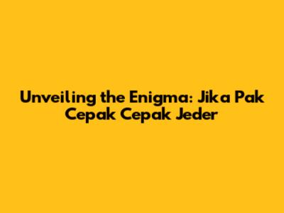 Unveiling The Enigma: Jika Pak Cepak Cepak Jeder
