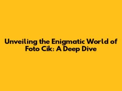 Unveiling The Enigmatic World Of 'Foto Cik': A Deep Dive