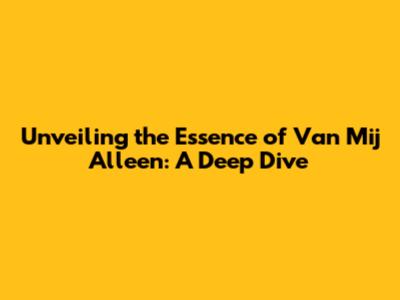 Unveiling The Essence Of 'Van Mij Alleen': A Deep Dive