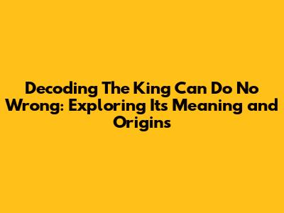 Unveiling 'The King Can Do No Wrong' Meaning & Origins