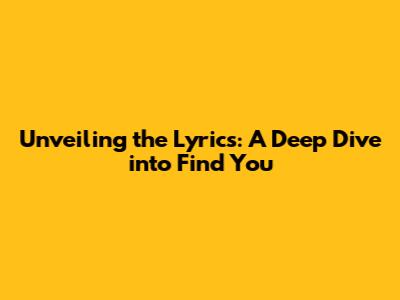 Unveiling The Lyrics: A Deep Dive Into 'Find You'