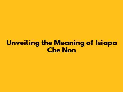 Unveiling The Meaning Of 'Isiapa Che Non'