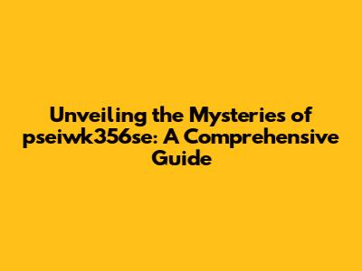 Unveiling The Mysteries Of Pseiwk356se: A Comprehensive Guide