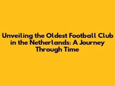 Unveiling The Oldest Football Club In The Netherlands