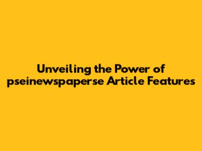 Unveiling The Power Of Pseinewspaperse Article Features