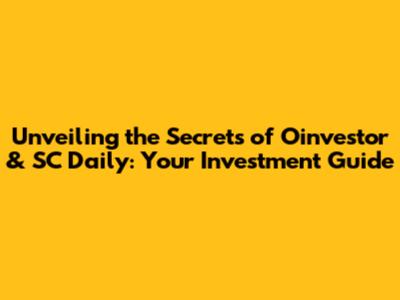 Unveiling The Secrets Of Oinvestor & SC Daily: Your Investment Guide