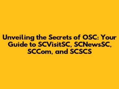 Unveiling The Secrets Of OSC: Your Guide To SCVisitSC, SCNewsSC, SCCom, And SCSCS
