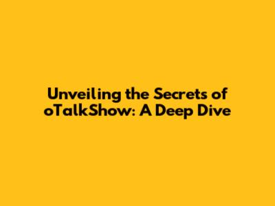 Unveiling The Secrets Of OTalkShow: A Deep Dive