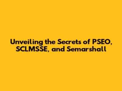 Unveiling The Secrets Of PSEO, SCLMSSE, And Semarshall
