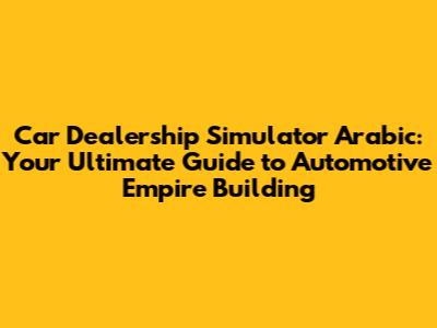 Tips and Tricks: Maximizing Your Success in Car Dealership Simulator Arabic