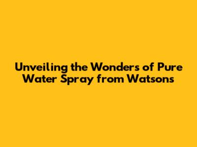 Unveiling The Wonders Of Pure Water Spray From Watsons