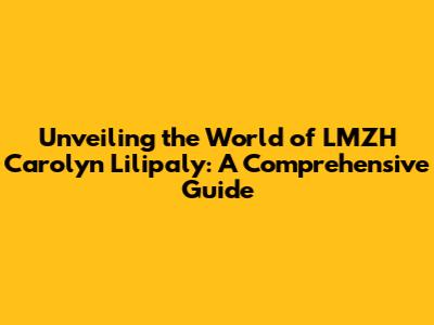 Unveiling The World Of LMZH Carolyn Lilipaly: A Comprehensive Guide