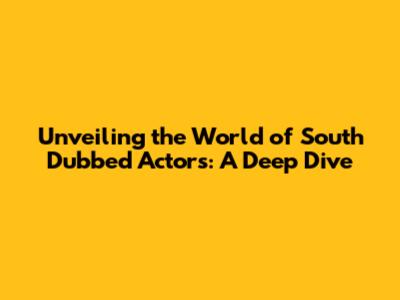 Unveiling The World Of South Dubbed Actors: A Deep Dive