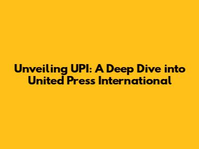 Unveiling UPI: A Deep Dive Into United Press International