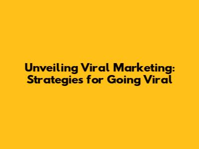 Unveiling Viral Marketing: Strategies For Going Viral