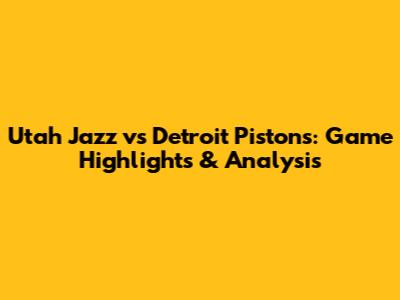 Utah Jazz Vs Detroit Pistons: Game Highlights & Analysis