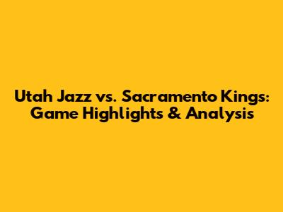Utah Jazz Vs Sacramento Kings: Game Highlights & Analysis