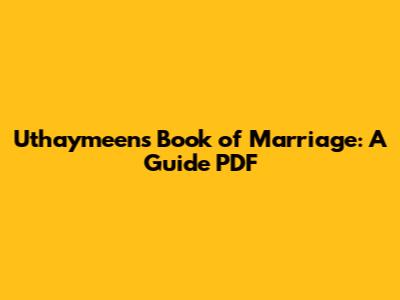 Uthaymeen's Book Of Marriage: A Guide PDF