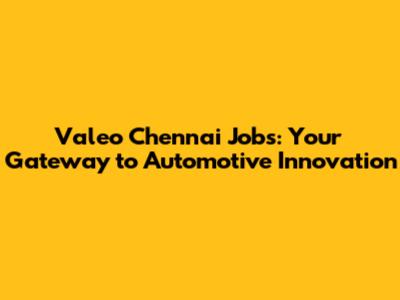 Valeo Chennai Jobs: Your Gateway To Automotive Innovation