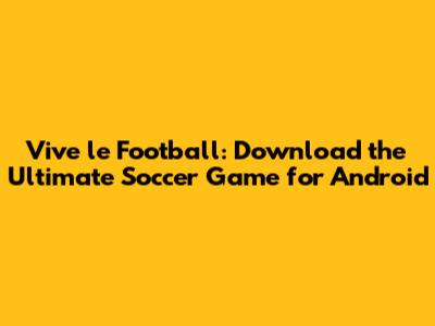 Vive Le Football: Download The Ultimate Soccer Game For Android