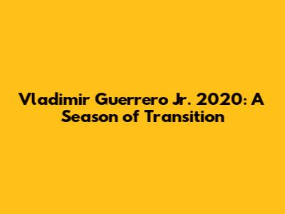 Vladimir Guerrero Jr. 2020: A Season Of Transition