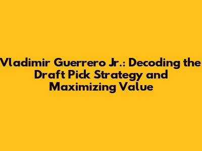 Vladimir Guerrero Jr.: Draft Pick Strategy And Analysis