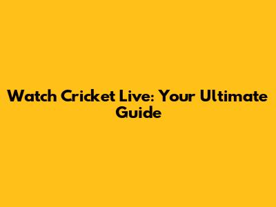Watch Cricket Live: Your Ultimate Guide