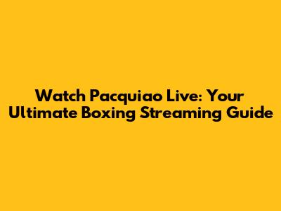 Watch Pacquiao Live: Boxing Streaming Guide