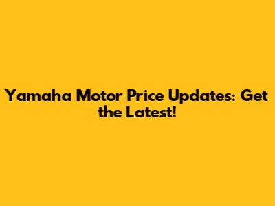 Yamaha Motor Price Updates: Get The Latest!