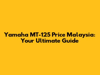 Yamaha MT-125 Price Malaysia: Your Ultimate Guide