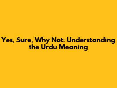 Yes, Sure, Why Not: Understanding The Urdu Meaning